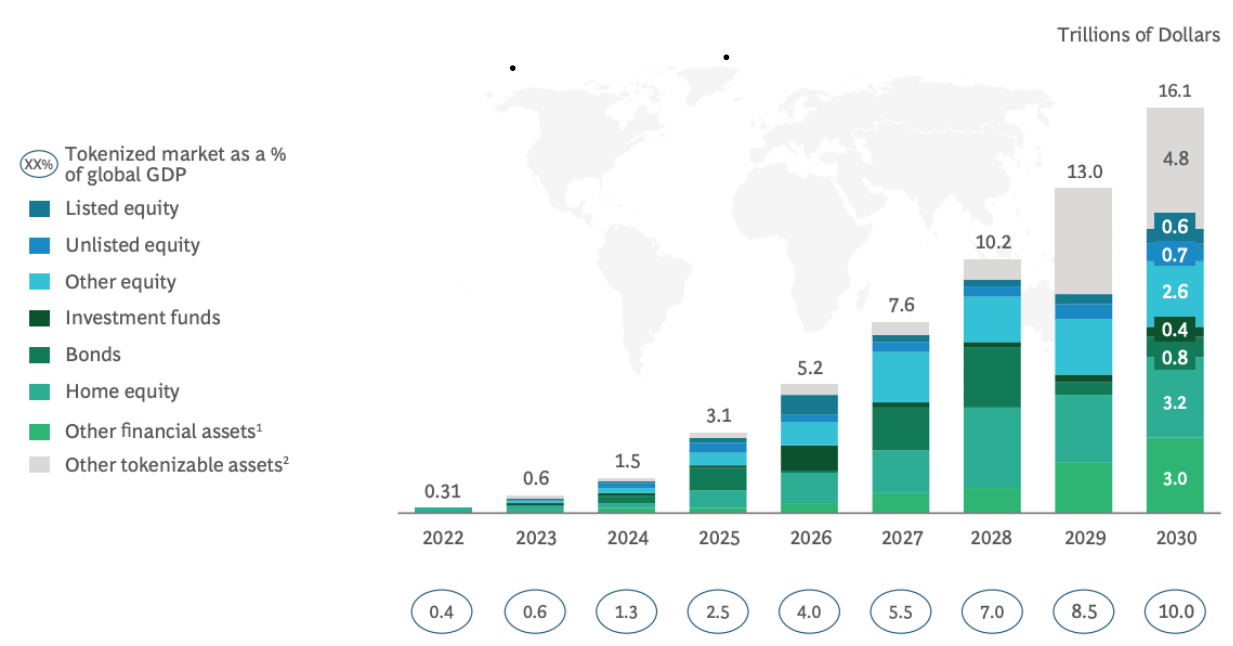 The tokenization of illiquid assets is estimated to be a US$16T business opportunity by 2030: