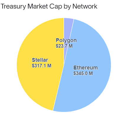 What is the correct sequence in terms of US treasury market cap by blockchain network?