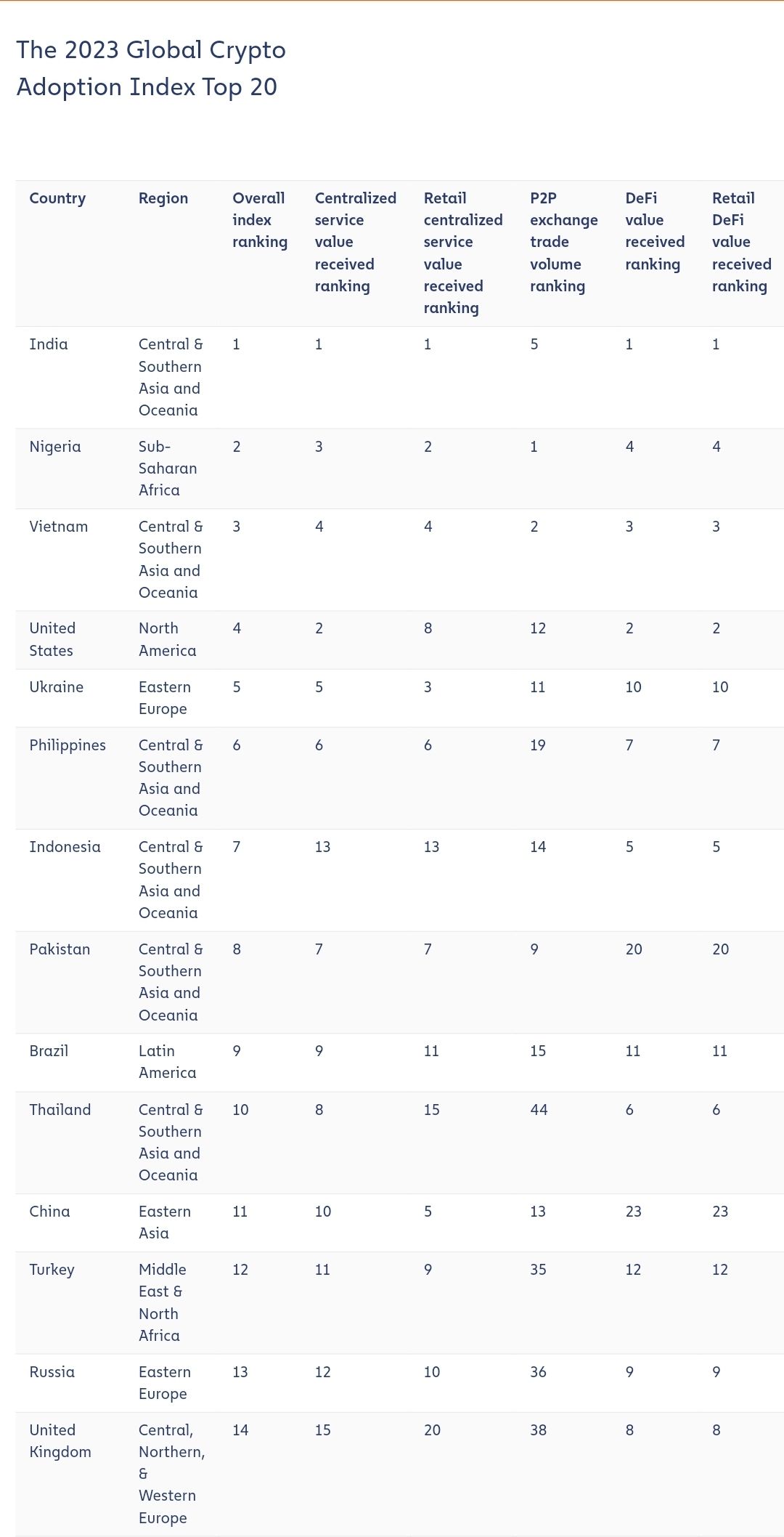 The 2023 Global Crypto Adoption Index Top 20, BHARAT (India) leading the way: